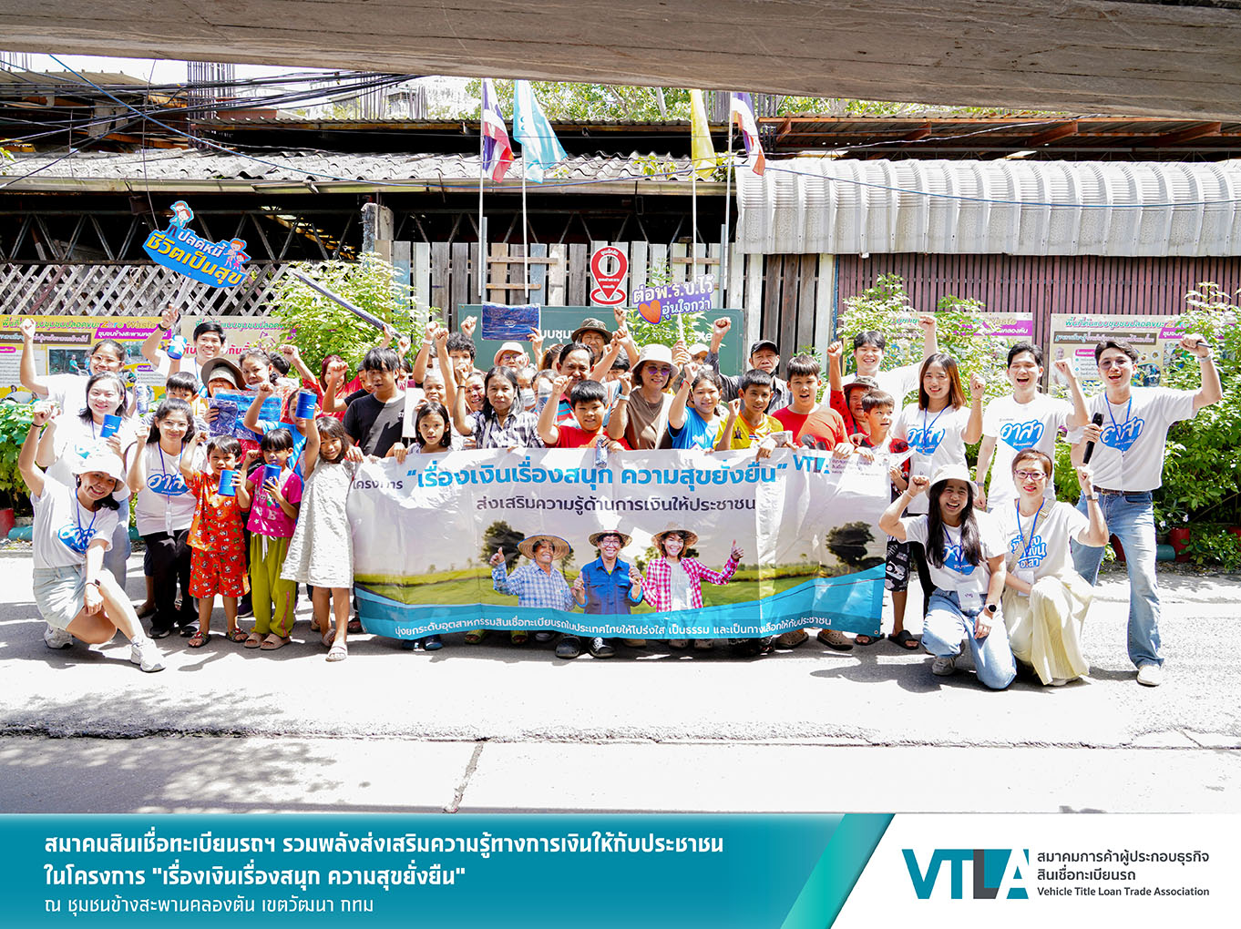 โครงการ “เรื่องเงินเรื่องสนุก ความสุขยั่งยืน” จัดโดย สมาคมการค้าผู้ประกอบธุรกิจสินเชื่อทะเบียนรถ (VTLA) วัตถุประสงค์เพื่อส่งเสริมความรู้ทางการเงินขั้นพื้นฐานให้กับชาวบ้านชาวชุมชนทั่วประเทศ โดยใช้หลักสูตร “ปลดหนี้ ชีวิตเป็นสุข” และ “ออมเงินง่ายๆ ที่ใครๆ ก็ทำได้” ผ่านความร่วมมือของสมาชิกสมาคมฯ ซึ่งปัจจุบันสมาคมมีสมาชิกผู้ประกอบการที่ได้รับใบอนุญาตจากธนาคารแห่งประเทศไทยจำนวนรวม 16 ราย มีสาขารวมกันทั่วประเทศกว่า 18,000 สาขา และมีฐานลูกค้ารวมกันกว่า 6 ล้านราย นอกจากนี้ทางสมาคมฯ ขอเรียนเชิญผู้ประกอบการสินเชื่อทะเบียนรถรายอื่นๆ สมัครเป็นสมาชิกของสมาคมฯ ได้ที่เบอร์โทรศัพท์ 065-919-0644 หรือเยี่ยมชมรายละเอียดเพิ่มเติมเกี่ยวกับสมาคมฯ ได้ที่ www.vtla.or.th